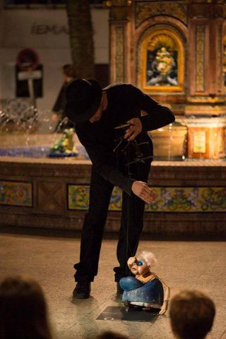 Dos titiriteros recorrerán diferentes plazas con sus marionetas de hilo brindando una oportunidad única de micro-espectáculos a sólo escasos centímetros de distancia.